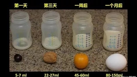 再來了解一下新生兒寶的胃容量。剛出生的第一天新生兒的胃大概是五到七毫升也就是一顆葡萄粒左右大。