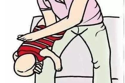 我們可以用背部拍擊法,讓孩子趴在大人腿上。上身向下傾斜趴在家長的腿上,頭低于胸部和腹部。